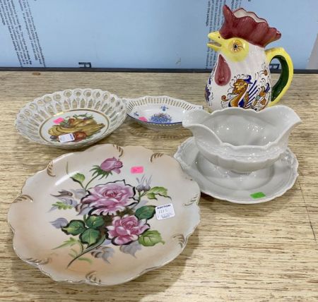 1215 Porcelain Hand Painted Plates and Ceramic Rooster Pitcher