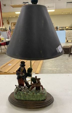 Porcelain Figural Table Lamp, has damage, wood base, 20"h. Porcelain Figural Table Lamp, has damage, wood base, 20"h.