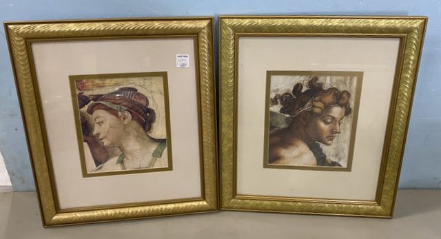 Two Roman Man and Woman Prints, matted, gold gilt framed, 17"h., 15"w. Two Roman Man and Woman Prints, matted, gold gilt framed, 17"h., 15"w.