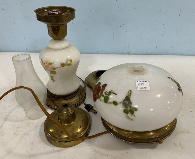 1273 Vintage Milk Glass Light Fixture and Table Lamp