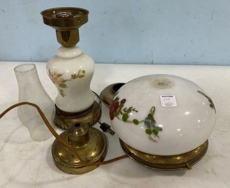 Vintage Milk Glass Light Fixture and Table Lamp, missing some pieces. Vintage Milk Glass Light Fixture and Table Lamp, missing some pieces.