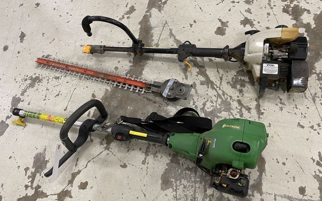 RYOBI and John Deere Weed Easter and Hedge Hog Attachment, not running, parts. RYOBI and John Deere Weed Easter and Hedge Hog Attachment, not running, parts.