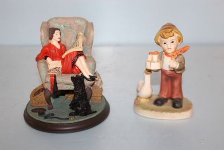 387 Resin Group of Lady in Chair "Sitting Pretty" Rockewell Collection, Boy with Goose