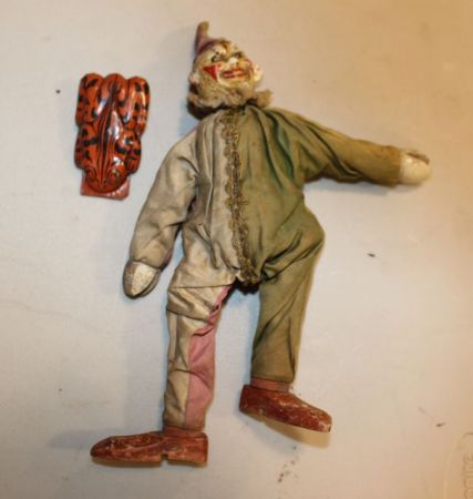 411 Vintage Wood Painted Clown, Halloween Finger Snapper (Noise Maker)