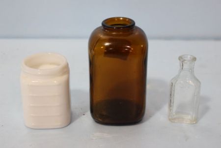 423 Snuff Bottle, J & J Milk Glass Jar, Sauce Bottle