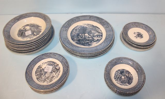 Includes; four dinner plates, six soup bowls, vegetable bowl, creamer/ sugar, four berry bowls, six saucers, six bread/ butter plates Includes; four dinner plates, six soup bowls, vegetable bowl, creamer/ sugar, four berry bowls, six saucers, six bread/ butter plates