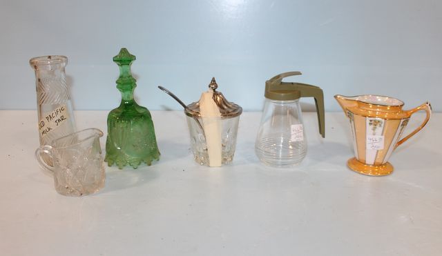 466 Syrup Jar, Japan Creamer, Green Bell, Clear Bottle, Clear Creamer, Clear Sugar Bowl