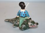 537 Vintage Cast Iron Alligator with Black Boy Riding