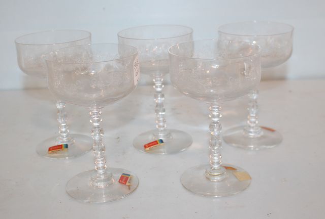 586 Set of Five Fostoria "Serenity" Etched Champaigne Glasses