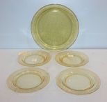 598 Set of Four Fostoria "June" Topaz Plates, "Madrid" Cake Plate