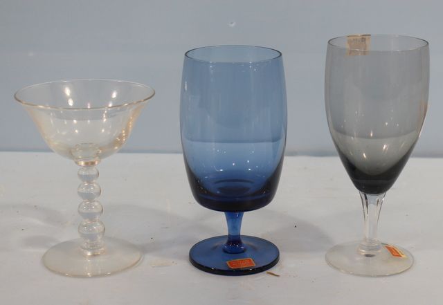 599 Swirl Stem Champaigne Glass, Fostoria "Debutante" Glass, Blue Reizart Gorham Glass