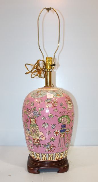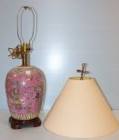 609 Oriental Style Pink Jar Shaped Lamp on Base