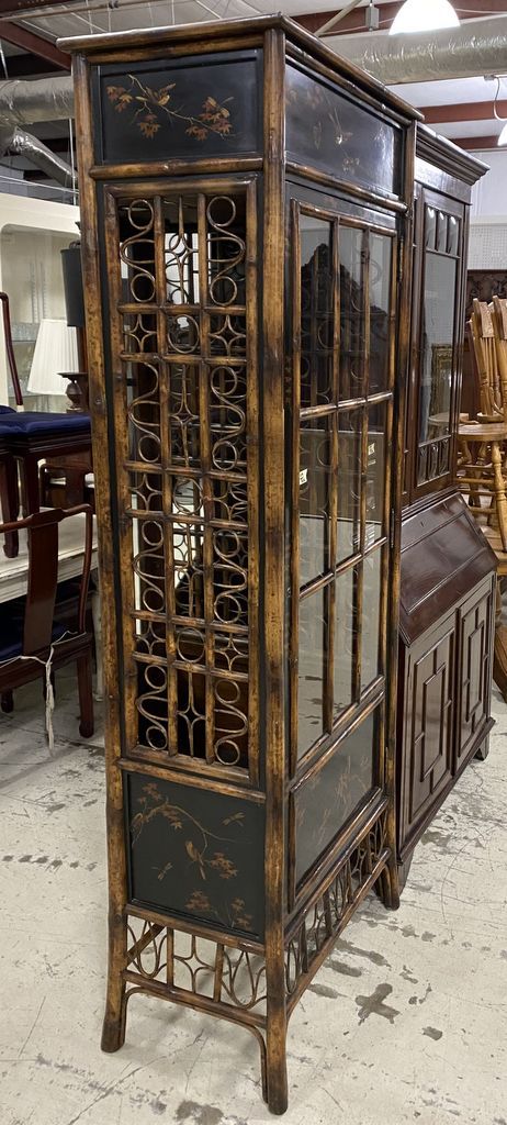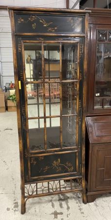 216 Black Lacquer Bamboo Style Curio Cabinet