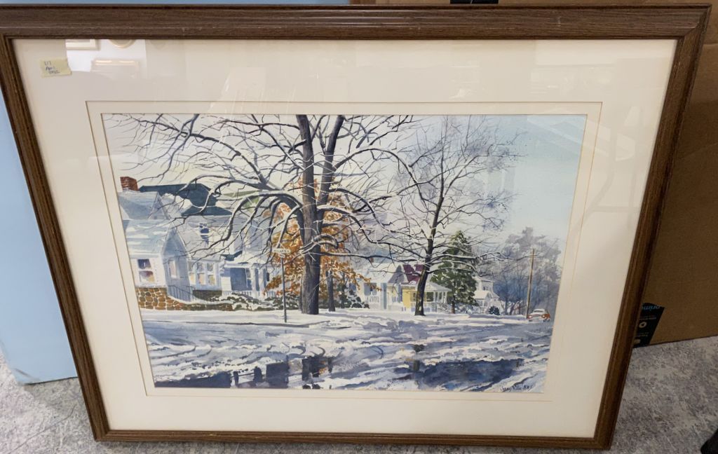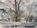 Jerry Ellis AWS NWS Signed Watercolor, Winter scene, matted, Framed, 33"h., 41"w. Missouri Artist. Jerry Ellis AWS NWS Signed Watercolor, Winter scene, matted, Framed, 33"h., 41"w. Missouri Artist.