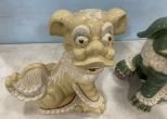 Vintage Large Ceramic Foo Dog Statue, jovial expression, glossy glazed, hand painted, hand crafted, 16"h., 18"w. Location Center Front Showcases Vintage Large Ceramic Foo Dog Statue, jovial expression, glossy glazed, hand painted, hand crafted, 16"h., 18"w. Location Center Front Showcases