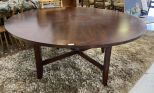 Large Round Cherry Dining Table, pedestal base, light wear, good shape, 30"h., 72"dia. Location Front of Screen Large Round Cherry Dining Table, pedestal base, light wear, good shape, 30"h., 72"dia. Location Front of Screen