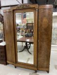 Large French Single Door Armoire, beveled mirror door, two sides door age wear, no interior shelves, will break down, 89"h., 65"w., 17"d. Location Right Side 6th Row Large French Single Door Armoire, beveled mirror door, two sides door age wear, no interior shelves, will break down, 89"h., 65"w., 17"d. Location Right Side 6th Row