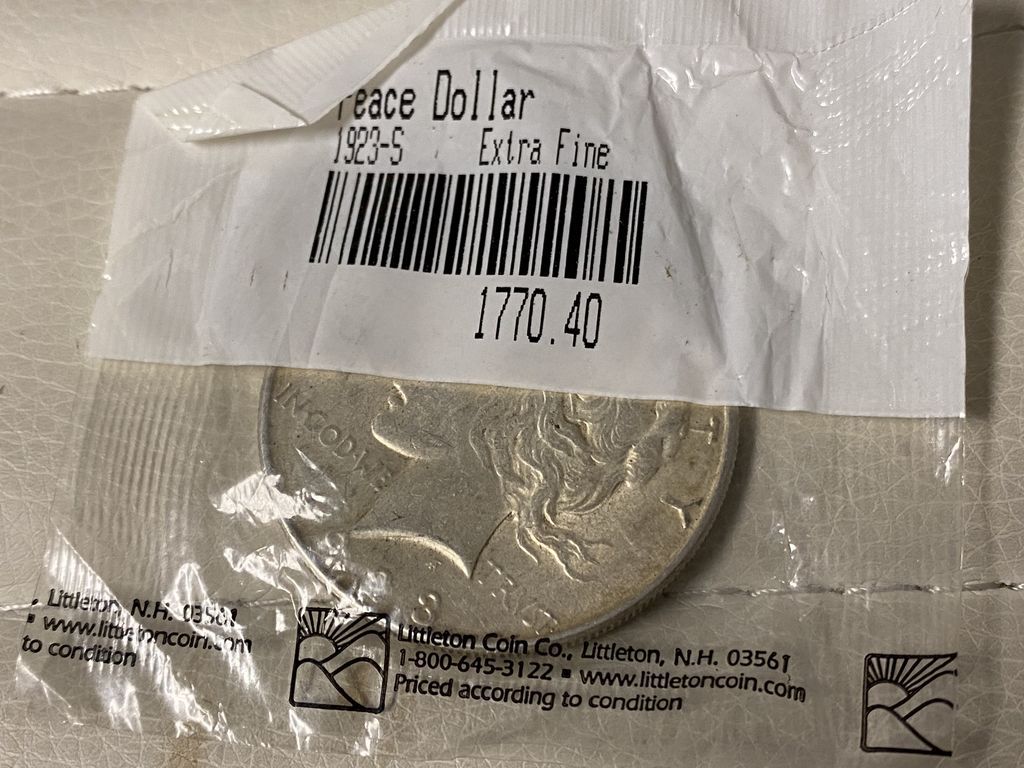 1923-S Peace Dollar, Extra Fine, Location: Wood Slant Showcase 1923-S Peace Dollar, Extra Fine, Location: Wood Slant Showcase