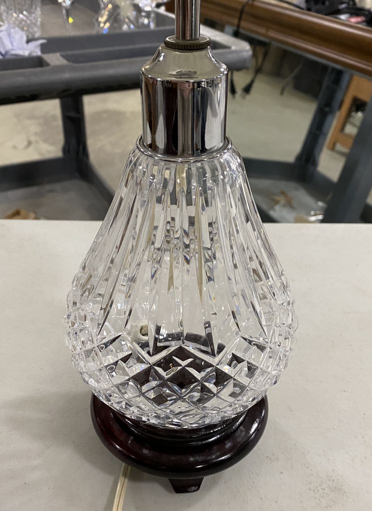 Waterford Crystal Lamp, vase is loose from wood base, 20"h. Waterford Crystal Lamp, vase is loose from wood base, 20"h.