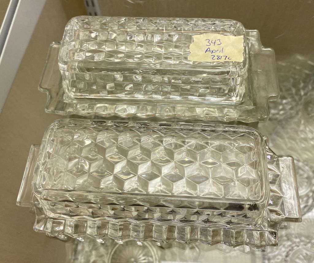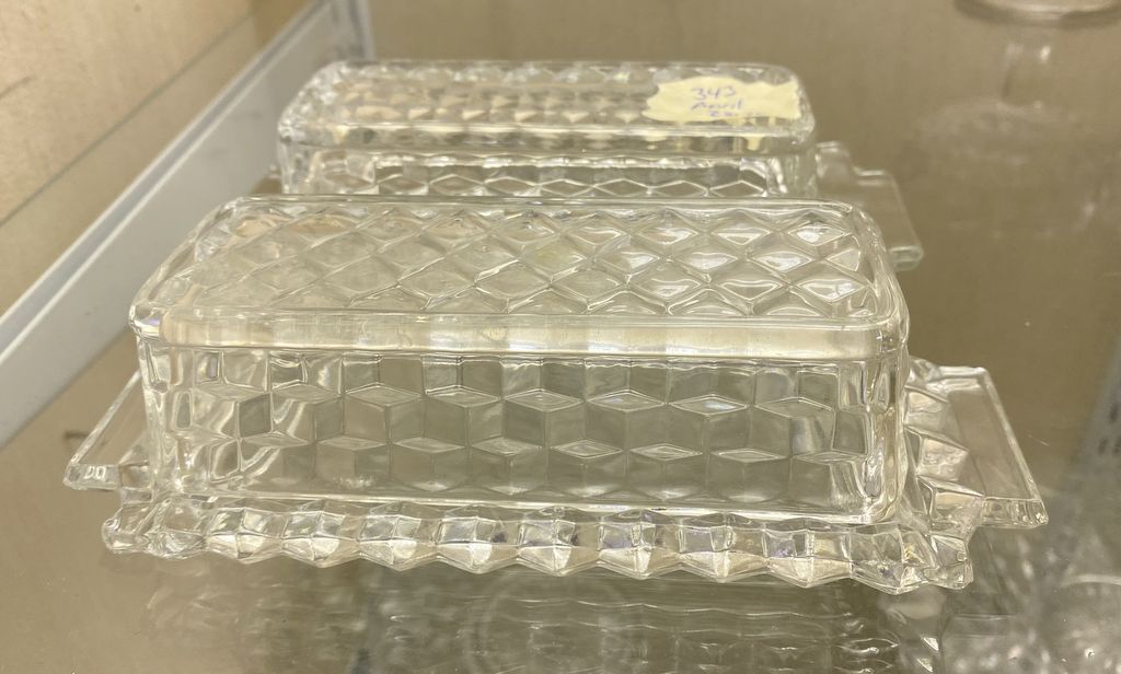 Fostoria American Clear Butter Dishes, 8"w. Location Back Tall White Cases Fostoria American Clear Butter Dishes, 8"w. Location Back Tall White Cases