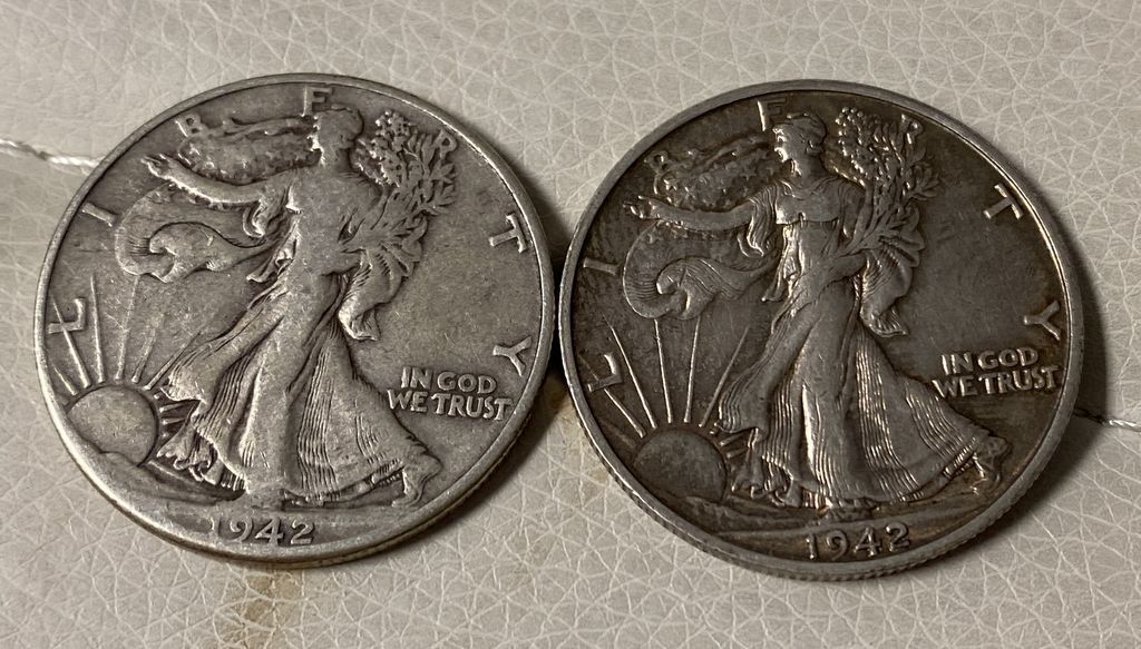 2-1942 Walking Liberty Half Dollars, Location: Wood Slant Showcase 2-1942 Walking Liberty Half Dollars, Location: Wood Slant Showcase