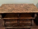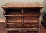 Pulaski Furniture Birkhaven Media Chest, open front and drawers, 40"h. 48"w., 20"d. Lush mocha with silver and gold highlights, Mappa Burl and Birch veneers, Marble veneered, Bombe shaping, Miskelly Furniture, Location: Left Side 5th Row Pulaski Furniture Birkhaven Media Chest, open front and drawers, 40"h. 48"w., 20"d. Lush mocha with silver and gold highlights, Mappa Burl and Birch veneers, Marble veneered, Bombe shaping, Miskelly Furniture, Location: Left Side 5th Row