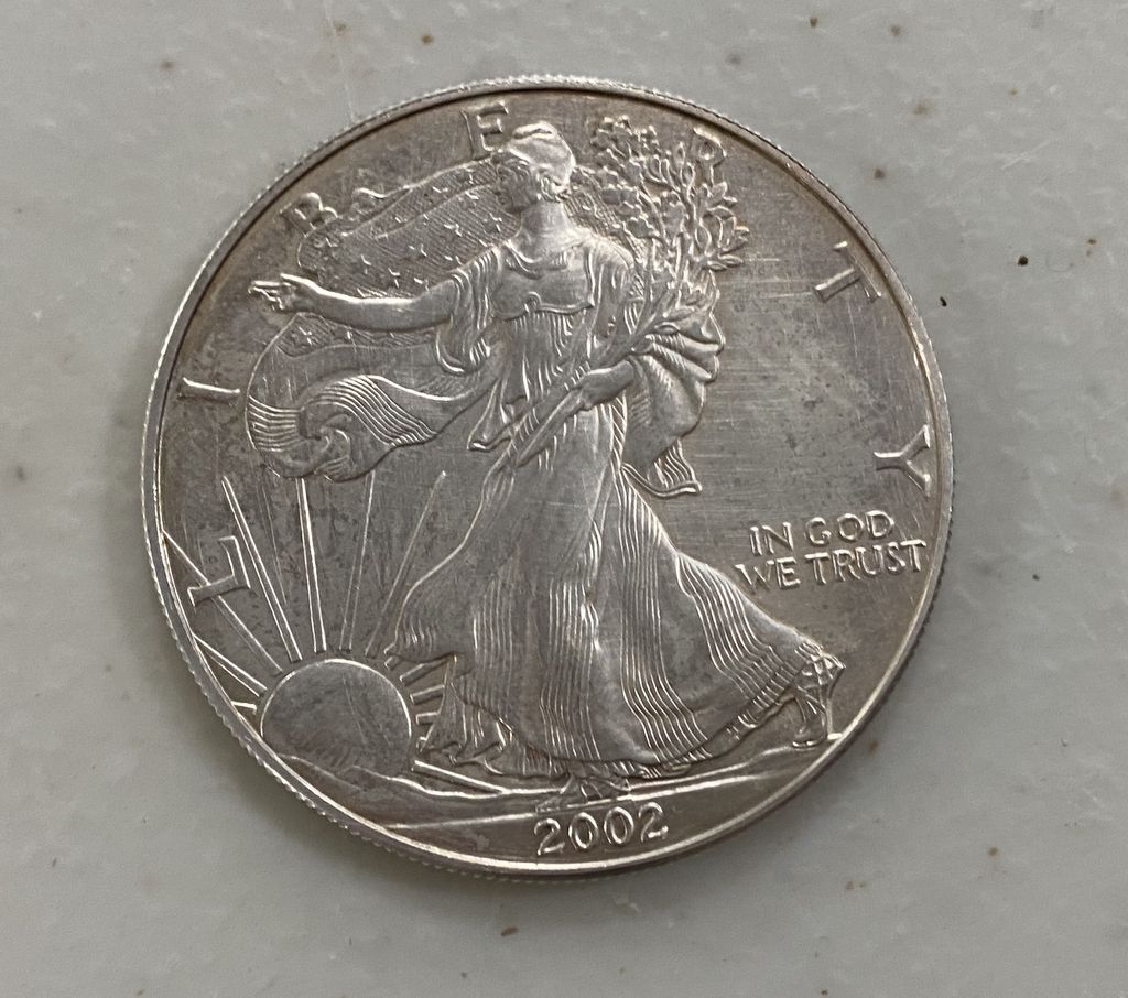 2002 Walking Liberty Silver Dollar, good condition. Location: Wood Slant Showcase 2002 Walking Liberty Silver Dollar, good condition. Location: Wood Slant Showcase