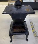 Antique Cast Iron Stove, good condition, missing front door, been re painted, 24"h., 20"w. Location: Left Side 6th Row Antique Cast Iron Stove, good condition, missing front door, been re painted, 24"h., 20"w. Location: Left Side 6th Row