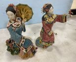 395 Chinese Porcelain Maiden Figurine and Sculpted Chinese Pottery Figurine