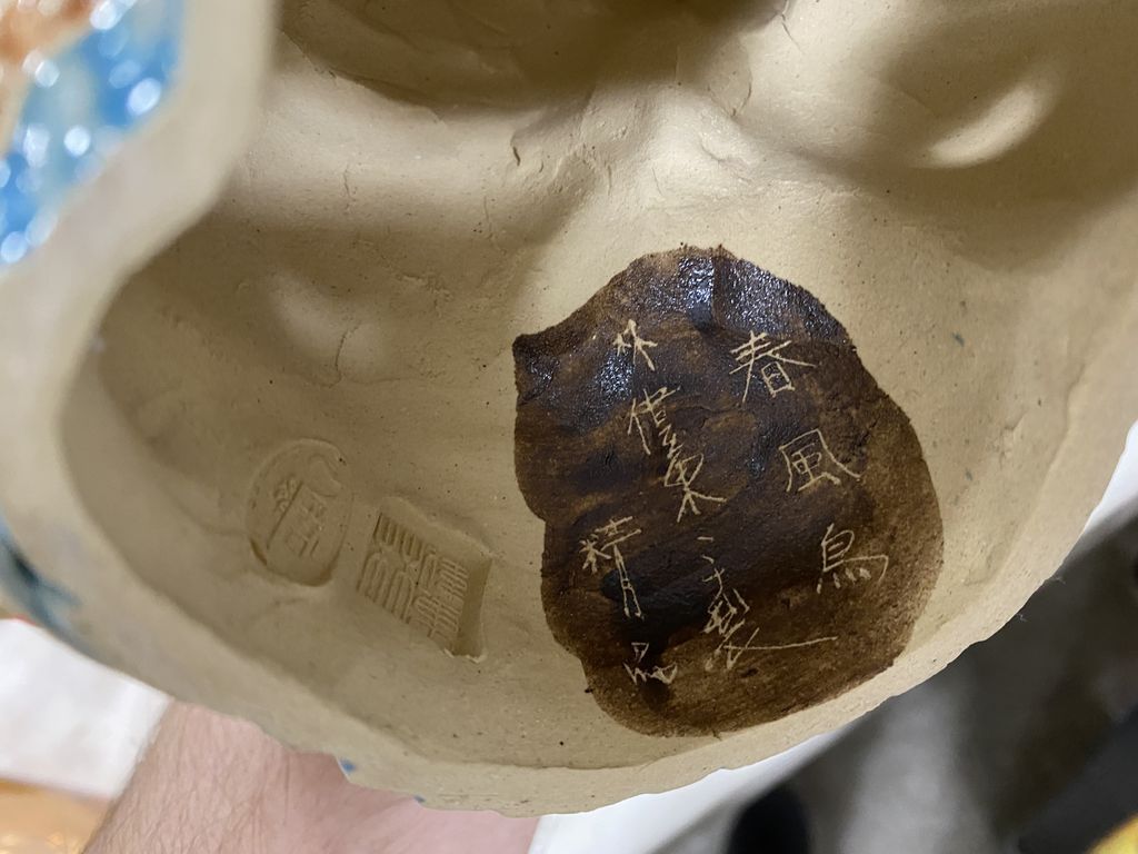 Chinese Porcelain Maiden Figurine and Sculpted Chinese Pottery Figurine of lady holding bird, one has mark, 11"h. Location Front White Shelves, 1st shelf Chinese Porcelain Maiden Figurine and Sculpted Chinese Pottery Figurine of lady holding bird, one has mark, 11"h. Location Front White Shelves, 1st shelf