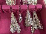 Reed & Barton Silver Plate Flatware, spoons, salad spoons, iced tea spoons, butter knife, knives, includes box. Location Front White Shelves, 4th shelf Reed & Barton Silver Plate Flatware, spoons, salad spoons, iced tea spoons, butter knife, knives, includes box. Location Front White Shelves, 4th shelf