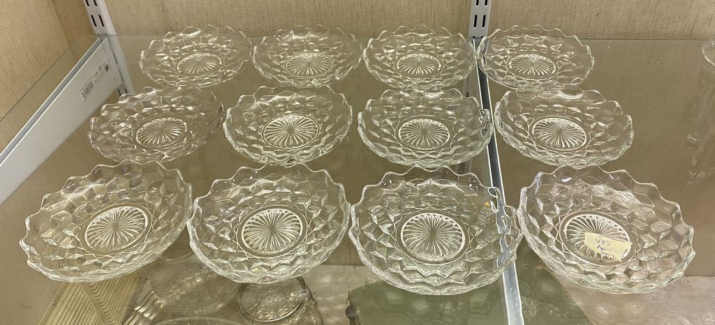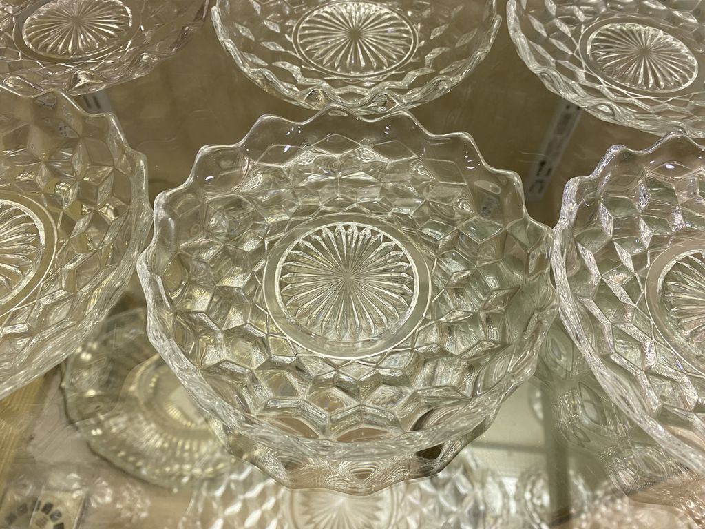 12 Fostoria American Clear Bowls, 6"dia. Location Back Tall White Cases 12 Fostoria American Clear Bowls, 6"dia. Location Back Tall White Cases