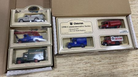 1990 Commemorative Series, Reissued 1997, Chevron Fuel Delivery Trunk, Standard Oil Well Repair Trunk, Standard Lubricants Delivery Trunk. Location Center Front Showcases 1990 Commemorative Series, Reissued 1997, Chevron Fuel Delivery Trunk, Standard Oil Well Repair Trunk, Standard Lubricants Delivery Trunk. Location Center Front Showcases