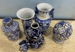 Five Pieces of Modern Blue and White Pottery, made in China, 12"h. Location Front of Screen Five Pieces of Modern Blue and White Pottery, made in China, 12"h. Location Front of Screen
