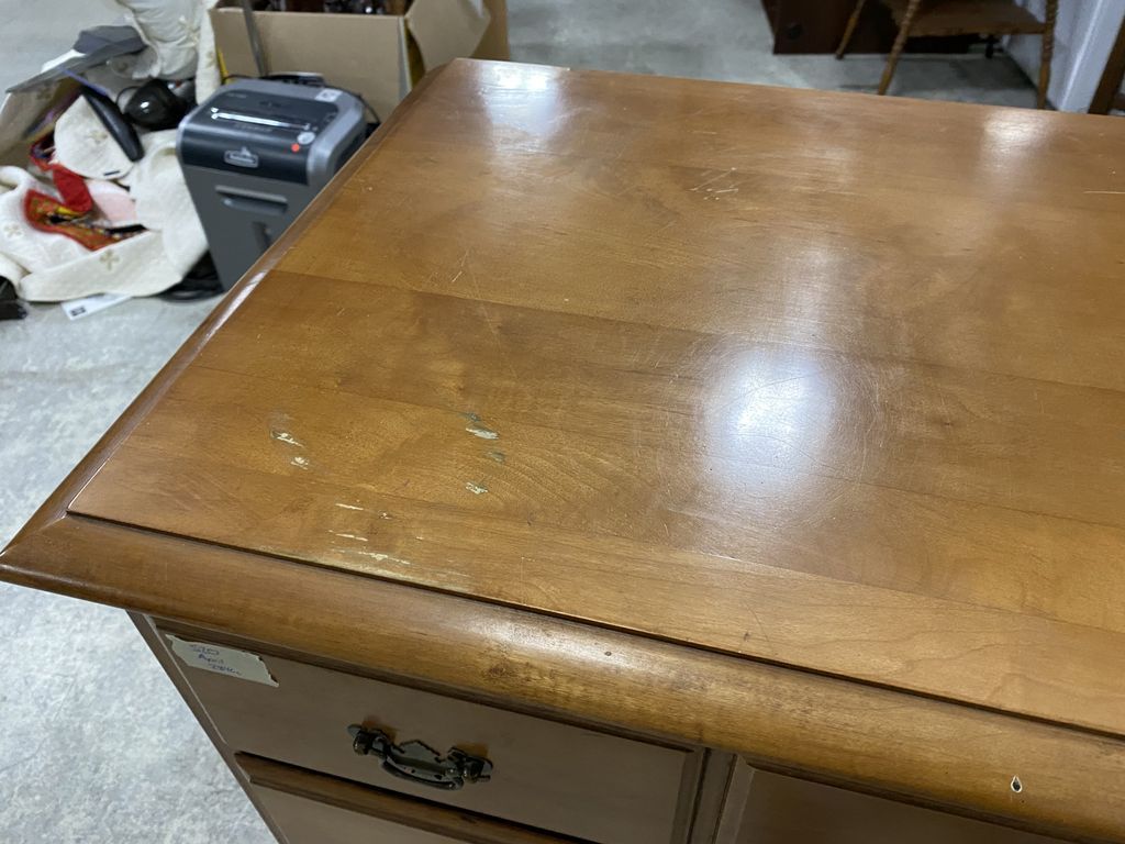Traditional Style Maple Chest of Drawers, five drawers, solid condition, light wear, Late 20th Century, 44"h., 32"w., 18"d. Location Left Side 2nd Row Traditional Style Maple Chest of Drawers, five drawers, solid condition, light wear, Late 20th Century, 44"h., 32"w., 18"d. Location Left Side 2nd Row