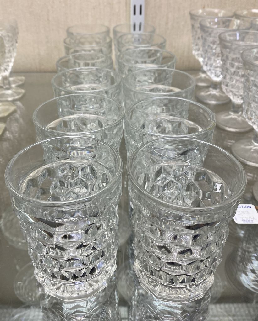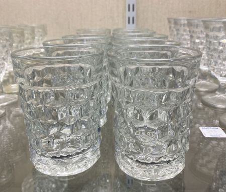 12 Fostoria American Clear Tumblers, 4"h. Location Back Tall White Cases 12 Fostoria American Clear Tumblers, 4"h. Location Back Tall White Cases