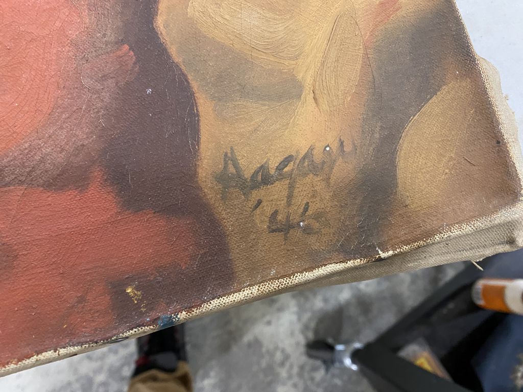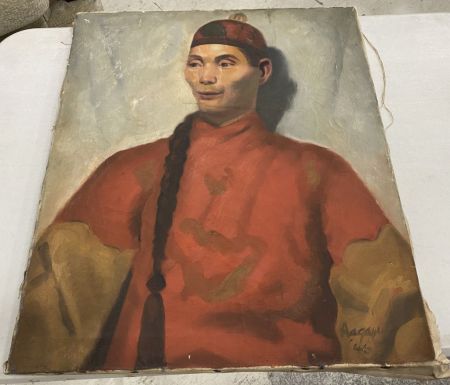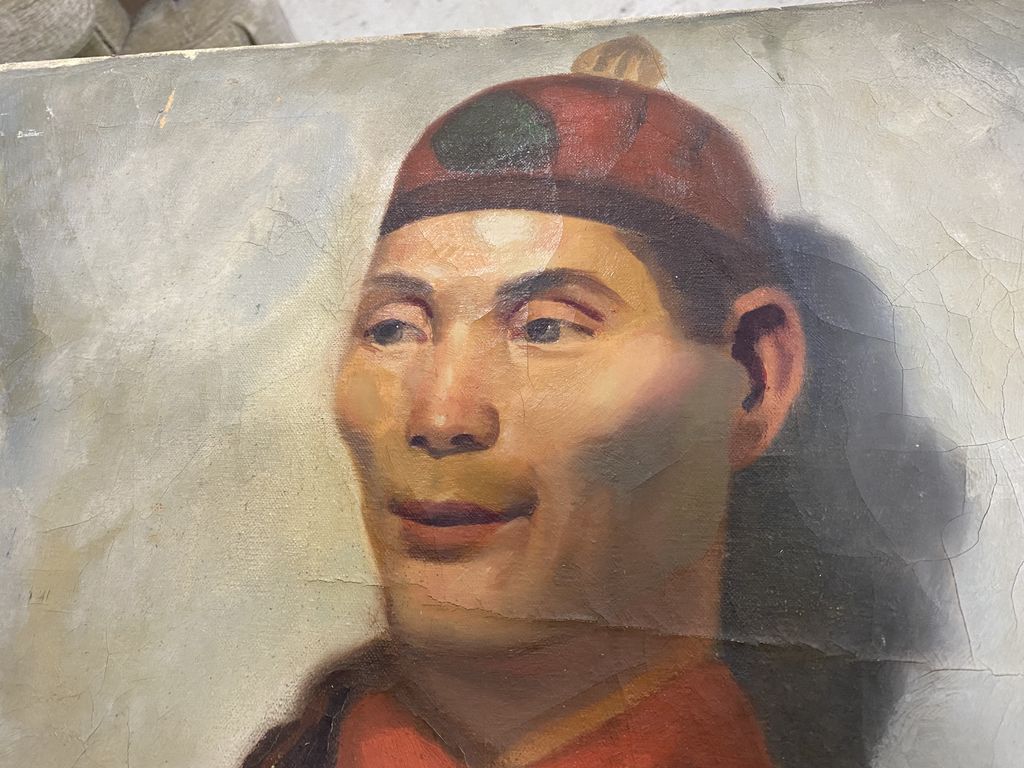 Painting of Asian Man Signed Lower Right 1946, looks to be Hagan signature, unframed, has age wear, 24"h., 20"w. Painting of Asian Man Signed Lower Right 1946, looks to be Hagan signature, unframed, has age wear, 24"h., 20"w.