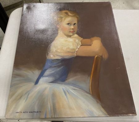 Judith Koesy Ahlstrom Portrait Painting of Girl, on canvas, signed lower left, unframed, 24"h., 20w. Location Back of Center Judith Koesy Ahlstrom Portrait Painting of Girl, on canvas, signed lower left, unframed, 24"h., 20w. Location Back of Center