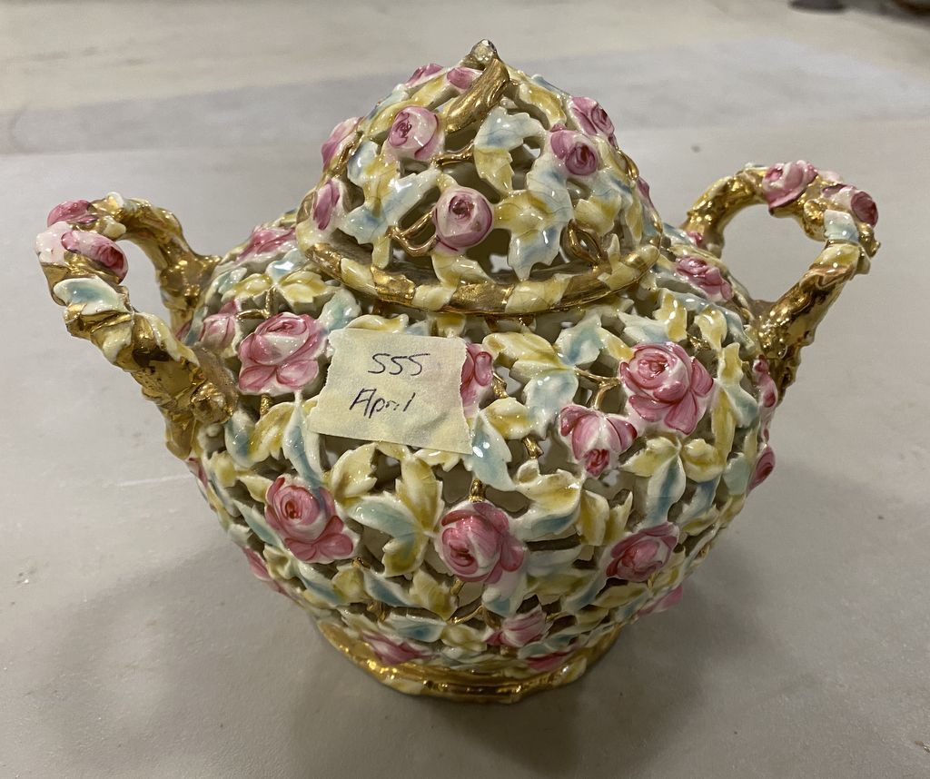 Hand Painted Porcelain Vase, roses, not marked, 6"h. Location: Back White Cases Hand Painted Porcelain Vase, roses, not marked, 6"h. Location: Back White Cases
