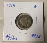 1913 Barber Dime, good, paper case, Location: Wood Slant Showcase 1913 Barber Dime, good, paper case, Location: Wood Slant Showcase