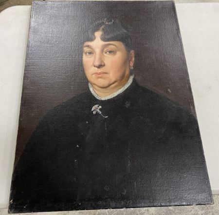 Unsigned Painting Portrait of Woman, on canvas, unframed, 24"h. 18"w. Location Back of Center Unsigned Painting Portrait of Woman, on canvas, unframed, 24"h. 18"w. Location Back of Center