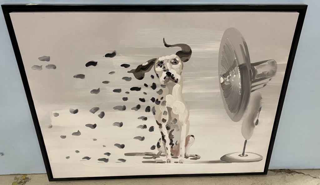 Spots Flying off Dalmation Dog, giclee on canvas, framed, 38"h., 50"w. Spots Flying off Dalmation Dog, giclee on canvas, framed, 38"h., 50"w.