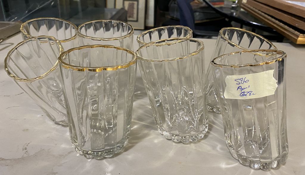 586 8 Leaning Gold Rimmed Cocktail Glasses
