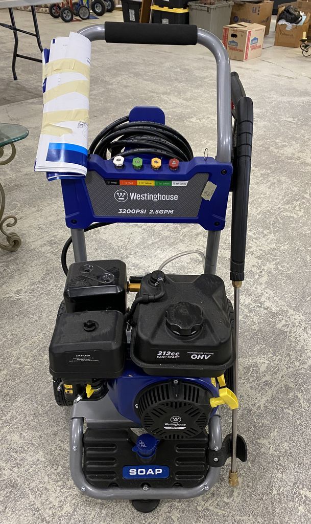 Westinghouse 3200 PSI 212cc Pressure Washer, barely used, untested. retail around 300.00, Location: Black Silver Metal Shelves Westinghouse 3200 PSI 212cc Pressure Washer, barely used, untested. retail around 300.00, Location: Black Silver Metal Shelves