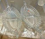 591 2 Fostoria American Clear Divided Oblong Handled Relish Dishes