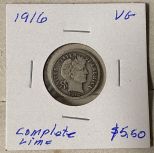 1916 Barber Dime, very good, paper case, Location: Wood Slant Showcase 1916 Barber Dime, very good, paper case, Location: Wood Slant Showcase