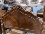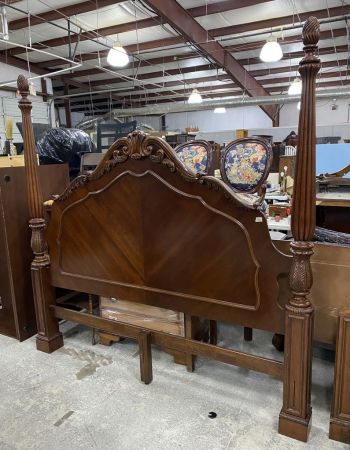 Reproduction King Size Cherry Four Poster Bed, headboard, footboard and rails. Good condition. Location Back of Center Reproduction King Size Cherry Four Poster Bed, headboard, footboard and rails. Good condition. Location Back of Center