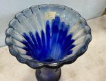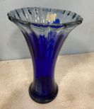 692 Art Glass Cobalt Blue and Clear Vase