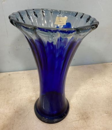 Art Glass Cobalt Blue and Clear Vase, Murano style, 14"h. Location Center Front Showcases Art Glass Cobalt Blue and Clear Vase, Murano style, 14"h. Location Center Front Showcases