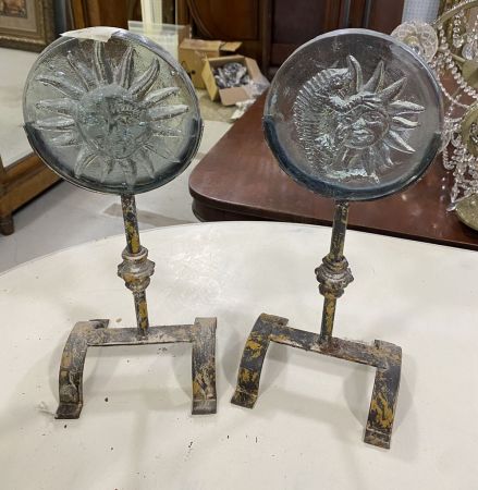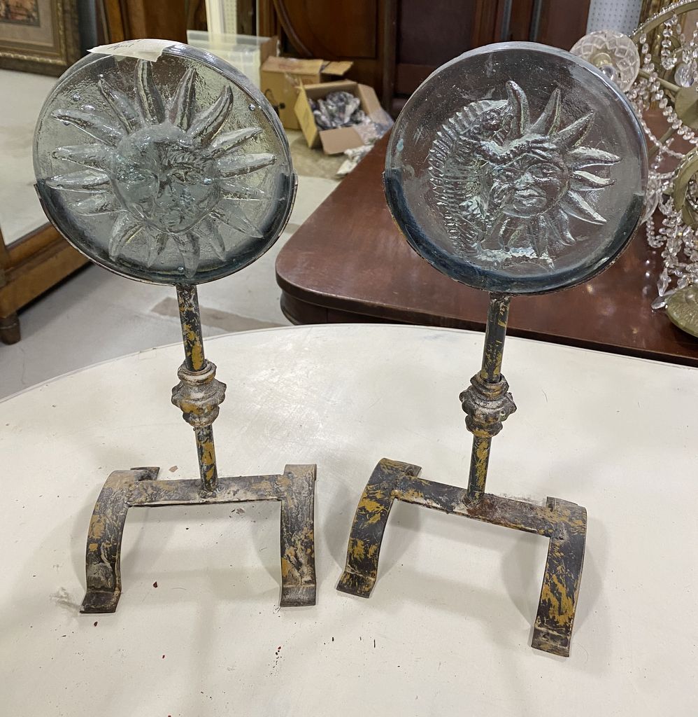 Pair of Decorative Glass Sun Stands, 15"h. Location: Back White Cases Pair of Decorative Glass Sun Stands, 15"h. Location: Back White Cases